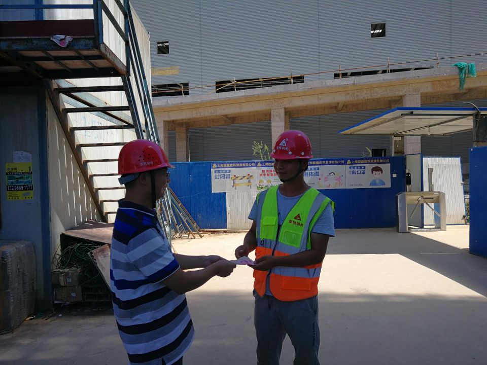 伴隨著聒噪的蟬鳴聲,慰問組來到現場項目部,詳細詢問了現場項目經理、工人及工地的防暑降溫具體措施和執行情況,對大家在高溫下依舊堅守崗位、默默奉獻的精神表示肯定和感謝,并囑咐大家時逢酷暑,注意防暑、勞逸結合,并對現場的工作進行了指導。