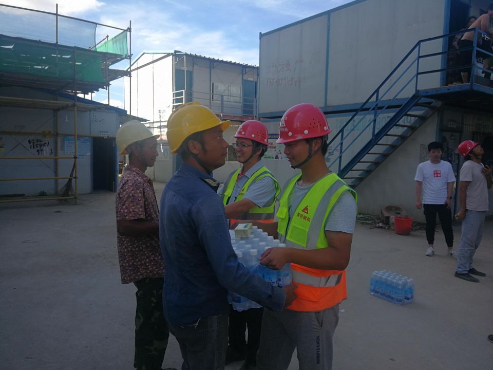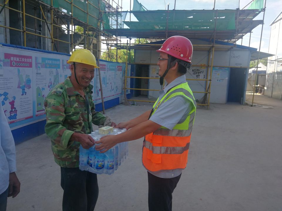 慰問組給奮戰在高溫下的一線員工們分發慰問金及防暑降溫飲品,并且叮囑大家在當前持續高溫的條件下,注意防暑、勞逸結合,一定要把健康、安全放在第一位。