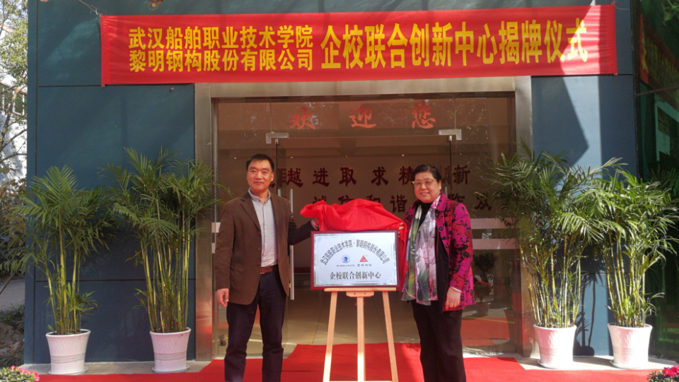 隨后,在與會代表的見證下,楊鵠院長、朱寧董事長共同為武漢船院、黎明鋼構企校聯合創新中心揭牌。雙方希望精誠合作,推進落實已簽署的校企合作協議,通過發揮各自優勢,進一步推進企校聯合創新及人才聯合培養,促進產教融合、產學研合作深入開展,以謀求企校生三方共贏,為社會創造更大價值。.png)